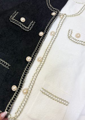 Елегантно сако, обсипано с камъни, с дантела и кожено коланче със златен акцент.